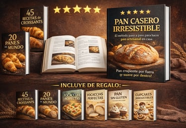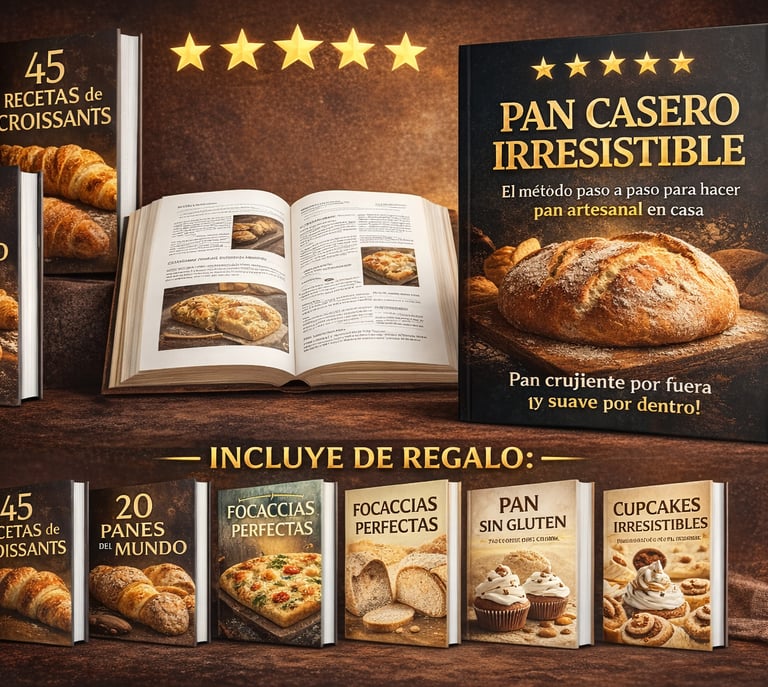 Pan Casero Irresistible” es el método práctico y paso a paso que te enseña a hacer pan artesanal en casa, con resultados perfectos desde el primer intento… incluso si nunca has hecho pan antes.